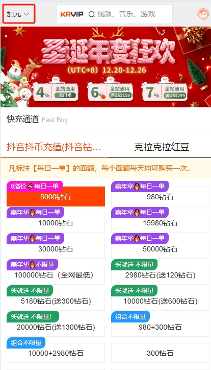 最近加拿大很多华人朋友在讨论他们如何充值抖音,因为自己长年在加拿大,也不熟悉大陆抖音充值的流程,尤其是苹果手机,如果通过app直充的话要扣30%,手续费太贵。因此加拿大海外充值抖音都选一个充值老平台 www.kavip.com。 这个网站的优点:网站确实运营10余年,7*24小时在线,24小时不打烊,另外优惠特价特别多。加拿大抖音充值操作如下: