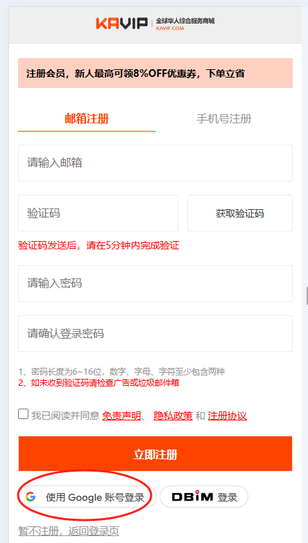 1. 浏览器输入https://www.kavip.com/detail/7814注册账号或者直接电话号码验证码登录或者谷歌直接登录,选择加币,然后选择对应的规格;